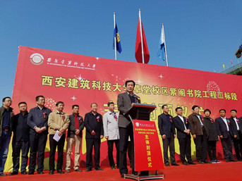 3月31日上午,陜西有色建設有限公司在建大紫閣書院項目施工現場,隆重舉行了西安建筑科技大學草堂校區紫閣書院工程Ⅲ標段工程主體封頂儀式。儀式由建大新校區建設工程指揮部辦公室主任武六元主持,公司副總經理史濤及學校相關負責人出席此次活動。